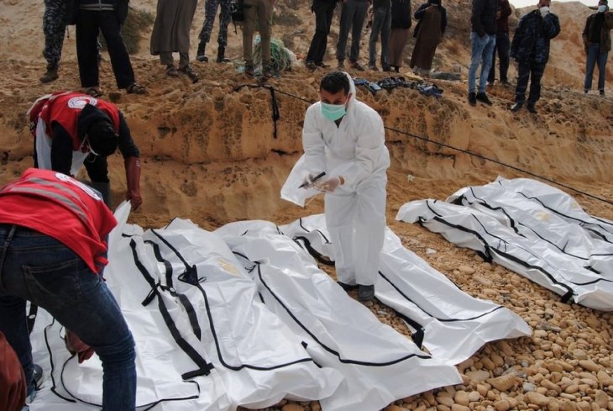 Kimlikleri henüz tespit edilemeyen cesetlerin, Libya üzerinden lastik botlarla Akdeniz'e açılan Afrikalı düzensiz göçmenlere ait olduğu belirtiliyor.