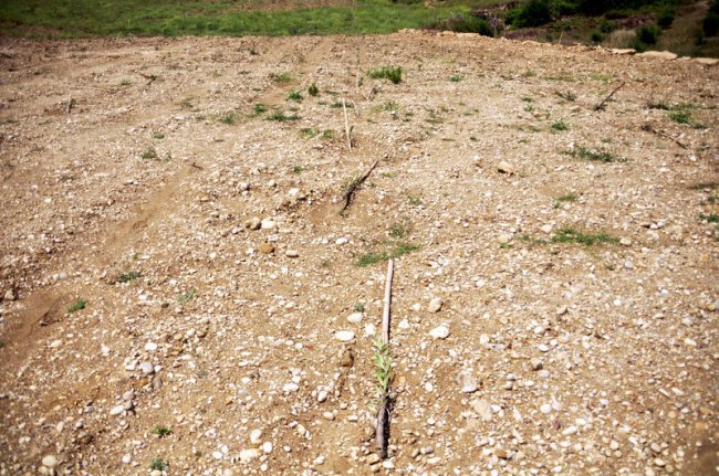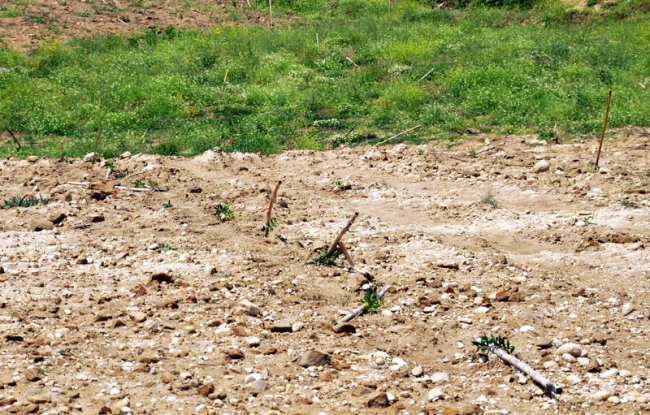 Araziyi tarla haline getirdikten sonra 1100 zeytin fidanı ektiğini anlatan Kürüş, "Bodur zeytin olarak bilinen İspanyol zeytini. Bu zeytin fidanlarını, Hatay'dan getirttik. Faturalı, belgeli ve sertifikalı. Bu zeytinlerin özelliği, 3 yılda meyve veriyor. Fideleri alırken konuştuk, internetten de çeşitli yayınları izledim. Bu fideleri almak için 2,5 ay sıra bekledik, şubat ayının sonu, mart ayının başında fideleri diktik" dedi.