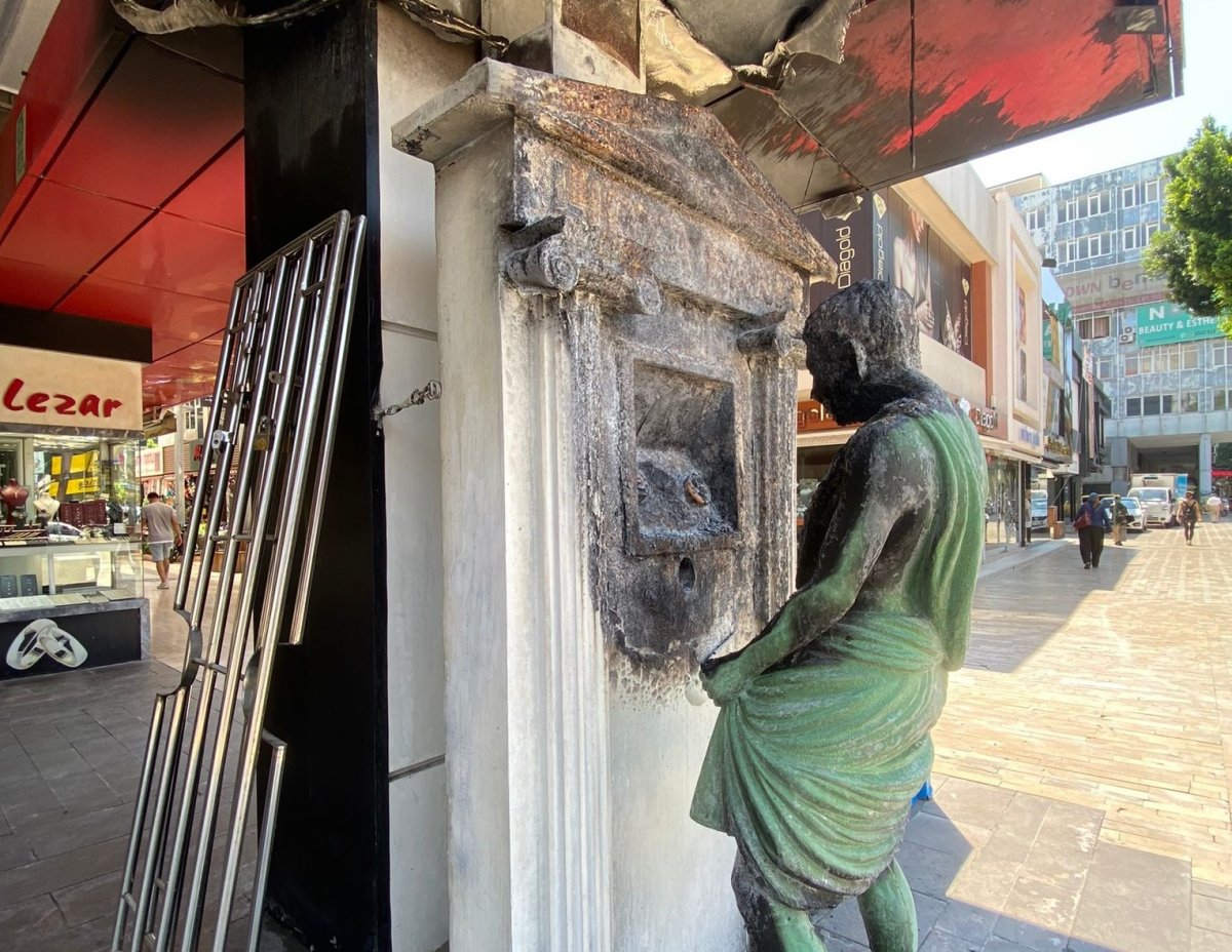 Antalya'da Roma figürlü heykel benzinle yakıldı