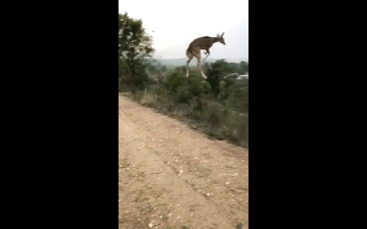 Paylaşımda canlının ne tür bir geyik olduğu belirtilmese de avcılık blogu Hunting Heart'ın bildirdiğine göre Hindistan'a özgü bir tür olan benekli geyik tehdit altındayken yüksek bir mesafeye zıplayabilir.