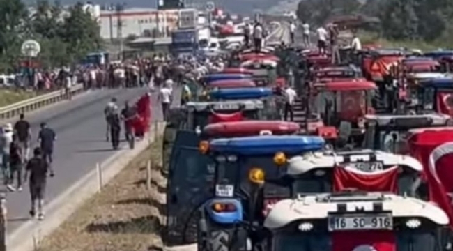 Çiftçiler, Bursa-Balıkesir karayolunu traktörleriyle kapattı. Çiftçiler “Hükümet istifa” sloganları da attı. Üreticilerle görüşen Vali Demirtaş, eylem yapan çiftçilere megafonla şöyle seslendi: