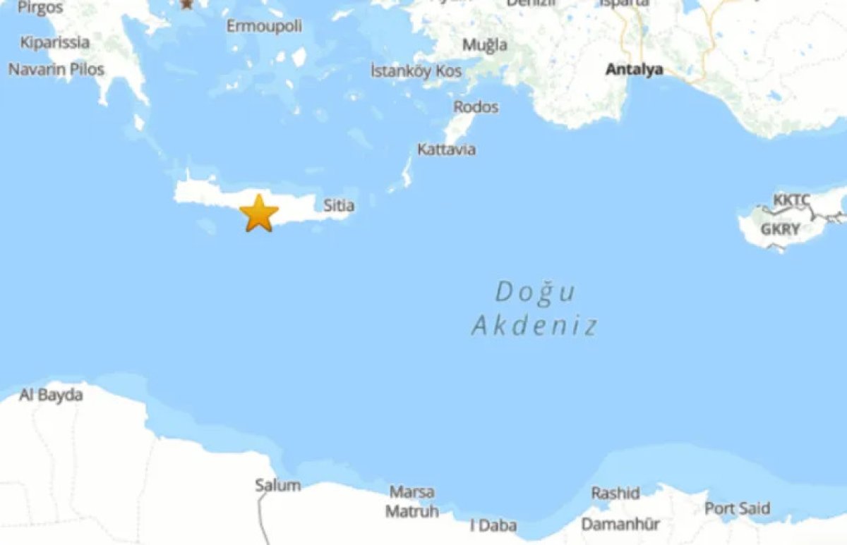 AFAD'ın açıkladığı bilgiye göre Ege Denizi'nde 5,1 büyüklüğünde deprem meydana geldi. Yunanistan'ın Girit Adası'da 5,1 büyüklüğünde deprem meydana geldi. AFAD'dan yapılan açıklamada, depremin, yerin 9,07 kilometre derinliğinde meydana geldiği bildirildi.