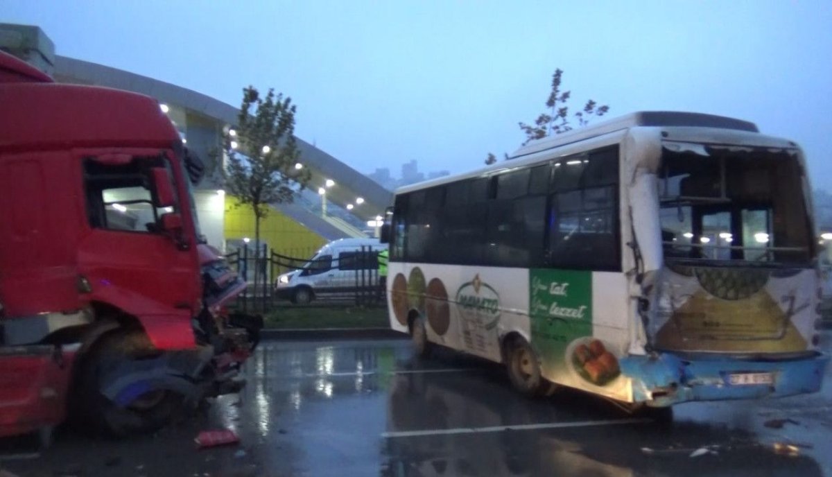 Gaziantep'in Aydınlar Mahallesi’nde, durakta yolcu alan halk otobüsüne TIR çarptı. Halk otobüsü de önündeki halk otobüsüne çarptı. Kazada 17 kişi yaralandı. Polis ekipleri, kazanın ardından TIR'ı bırakarak kaçan şoförün yakalanması için çalışma başlattı.