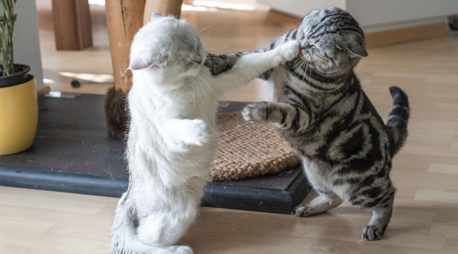 Bilim insanları, kediler arasındaki oyunbaz ve agresif etkileşimleri ayırt etmenin yollarını ortaya çıkardı. Yeni bulgular, evcil hayvanların oyunlarını ve gerçek kavgalarını tanımlamayı kolaylaştırabilir. Scientific Reports adlı bilimsel dergide Perşembe günü yayımlanan araştırmada kedilerin oyunbaz ve agresif davranışların bir karışımını sergileyebileceği ve insan dostları bunu düzgün bir şekilde yönetmediği takdirde bu davranışların tam bir kavgaya dönüşebileceği öne sürülüyor.
