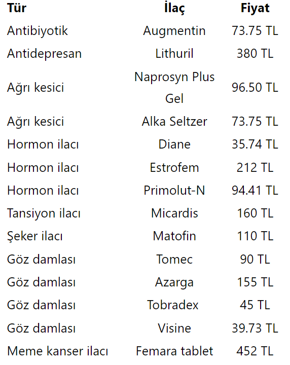 Eczanelerde bulunamayan, hastaların ulaşamadığı bazı ilaçlar şu şekilde: