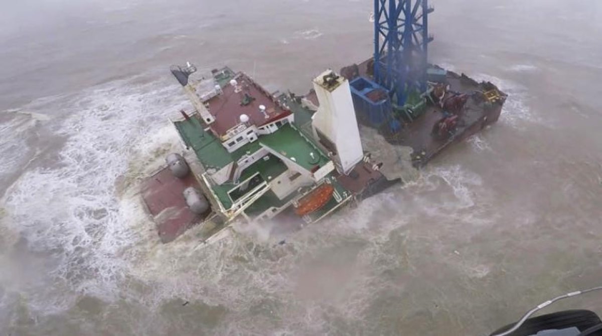 Hong Kong'da bir gemi fırtınada ikiye bölündü