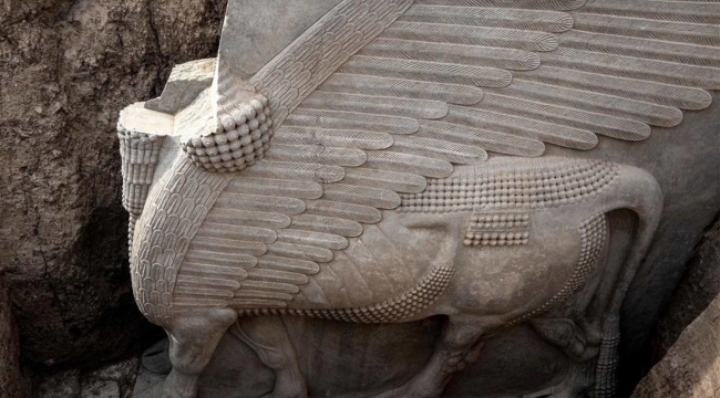 Irak’taki arkeologlar, daha önce baş kısmı çıkarılarak kaçırılan devasa Lamassu kabartmasının gövdesini ortaya çıkardı. Lamassu’nun kafa kısmı 1995 yılında çalınmıştı.
