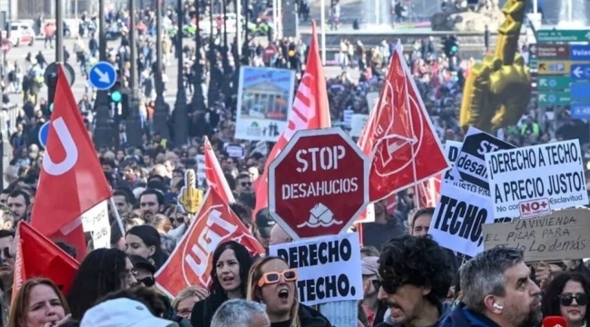 İspanya’da son yıllarda derinleşen konut krizi, ülke genelinde binlerce kişinin katılımıyla büyük protestolara sahne oldu. Madrid, Barselona ve 40’tan fazla şehirde toplanan kalabalıklar, artan ev kiraları ve barınma sorununu protesto etti. Protestoların merkezinde, kiracı derneklerinin hükümete yönelik çağrısı vardı. Dernekler, kira fiyatlarında %50 indirime gidilmesini talep ederken, bu gerçekleşmezse ülke çapında kira ödememe grevine gideceklerini duyurdu. Göstericiler ellerinde “Konut krizine son”, “Rantçılara dur de” yazılı pankartlar taşıdı. Madrid Kiracılar Derneği Sözcüsü Valeria Racu, ülkedeki durumu şu sözlerle özetledi: “Süresiz eylem kararı aldık. Greve gitmeliyiz. Rantçılar durdurulmalı. 2025’te sözleşmesi sona erecek yarım milyon haneyi evde kalmaya çağırıyoruz.” Racu, kiracıların birlikte hareket etmesi halinde grevin fiyatlar üzerinde ciddi bir baskı oluşturacağını ve kiraların %30 oranında düşebileceğini öne sürdü. Benzer bir açıklama Logrono Kiracılar Derneği Sözcüsü Mariola Gutierrez’den geldi: “Onurlu konut hakkımızı savunuyoruz. Bugünkü halk hareketi rantçılar ve hükümet üzerinde baskı kuracaktır.”.