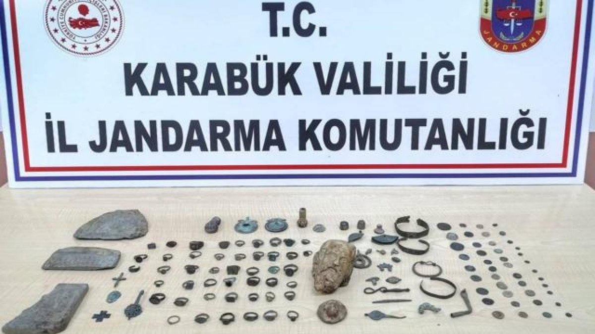 Karabük'ün Safranbolu ilçesinde 2 taş heykel başı, 3 taş obje, 77 metal obje ve 43 sikkenin ele geçirildiği operasyonda bir şüpheli gözaltına alındı.