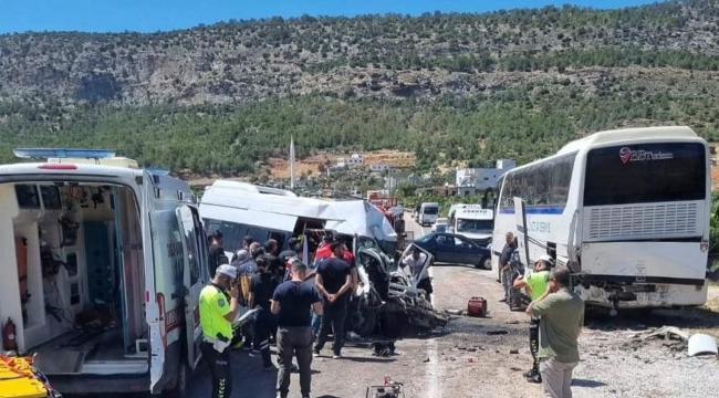 Mersin'in Gülnar ilçesinde bir minibüsin yol kenarında duran otobüse çarpması sonucu minibüsteki bir yolcu hayatını kaybederken sürücü ve yanındaki kişi ise yaralandı.