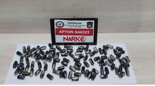 Erzincan’da yol uygulamasında yakalanan ve mide ve bağırsağında afyon sakızı taşıdığı belirlenen İran uyruklu bir kişi tutuklandı. İranlıdan 101 adet paket halinde toplam 848,82 gr Afyon sakızı çıkarıldı.