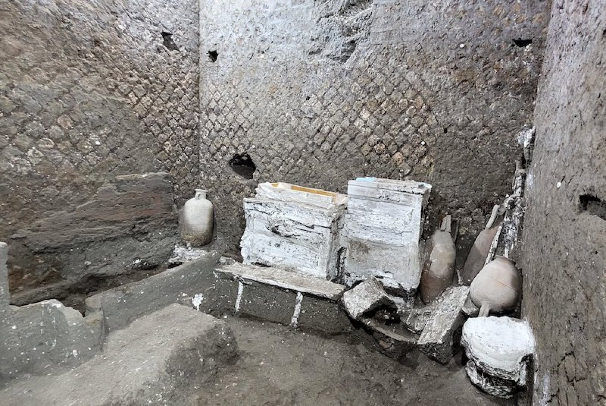 Pompeii Antik Kenti içerisinde yapılan arkeolojik araştırmalarda bir villada yer alan ve kölelerin kullandığı tahmin edilen bir yatak odası bulundu. Odada iki yatak, iki küçük dolap ve bir dizi çömlek ve içinde iki fare ve bir sıçanın kalıntılarının bulunduğu seramik kaplar bulunuyor.