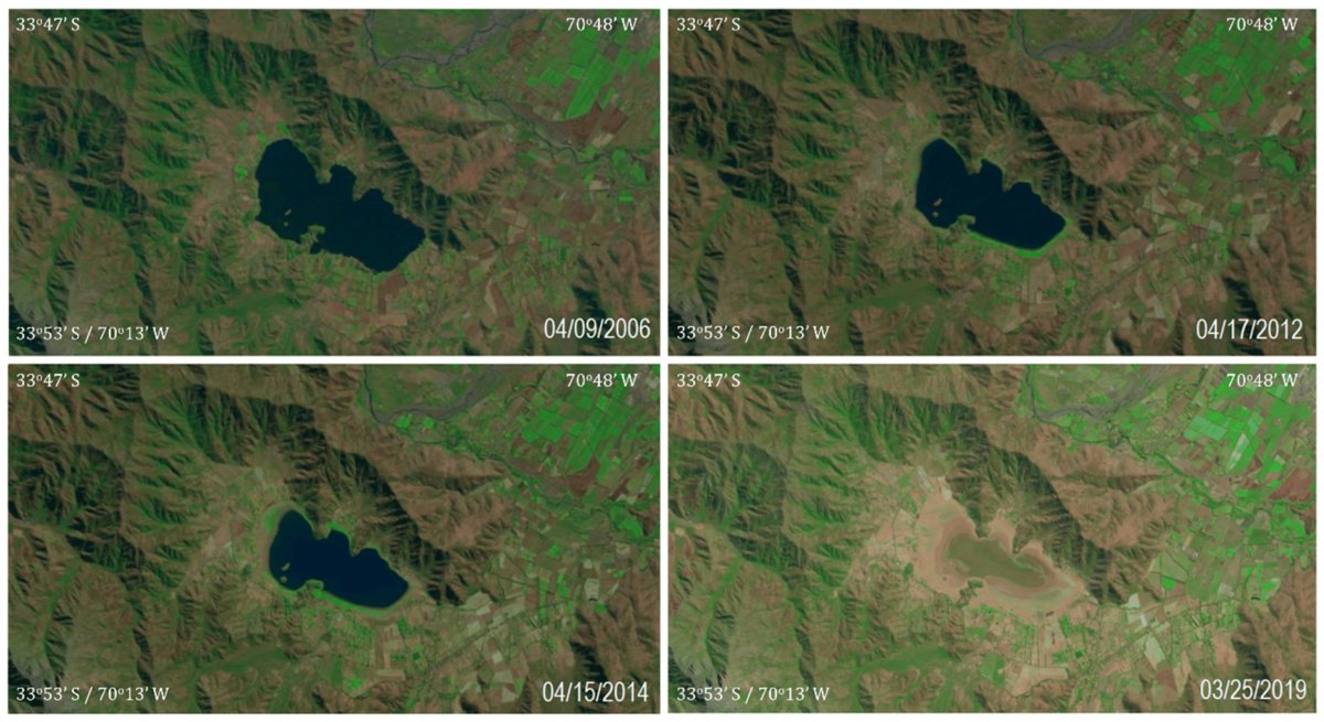 Avrupa Birliği'nin dünya gözlem programı Copernicus, 16 Mayıs tarihinde Şili'nin başkenti Santiago yakınlarındaki Aculeo Gölü'nün 7 yıllık uydu görsellerini paylaşarak gölün tamamen kuruduğunu açıkladı. Copernicus açıklamasında “Göl, bir zamanlar Santiago yakınlarında büyük bir turistik cazibe merkeziydi, ancak şimdi kuru. Son zamanlarda yapılan bir araştırma, diğer faktörlerin rol oynamasına rağmen, insan faaliyetinin gölün kaybolmasının birincil nedeni olduğunu tespit etti” ifadelerini kullandı.