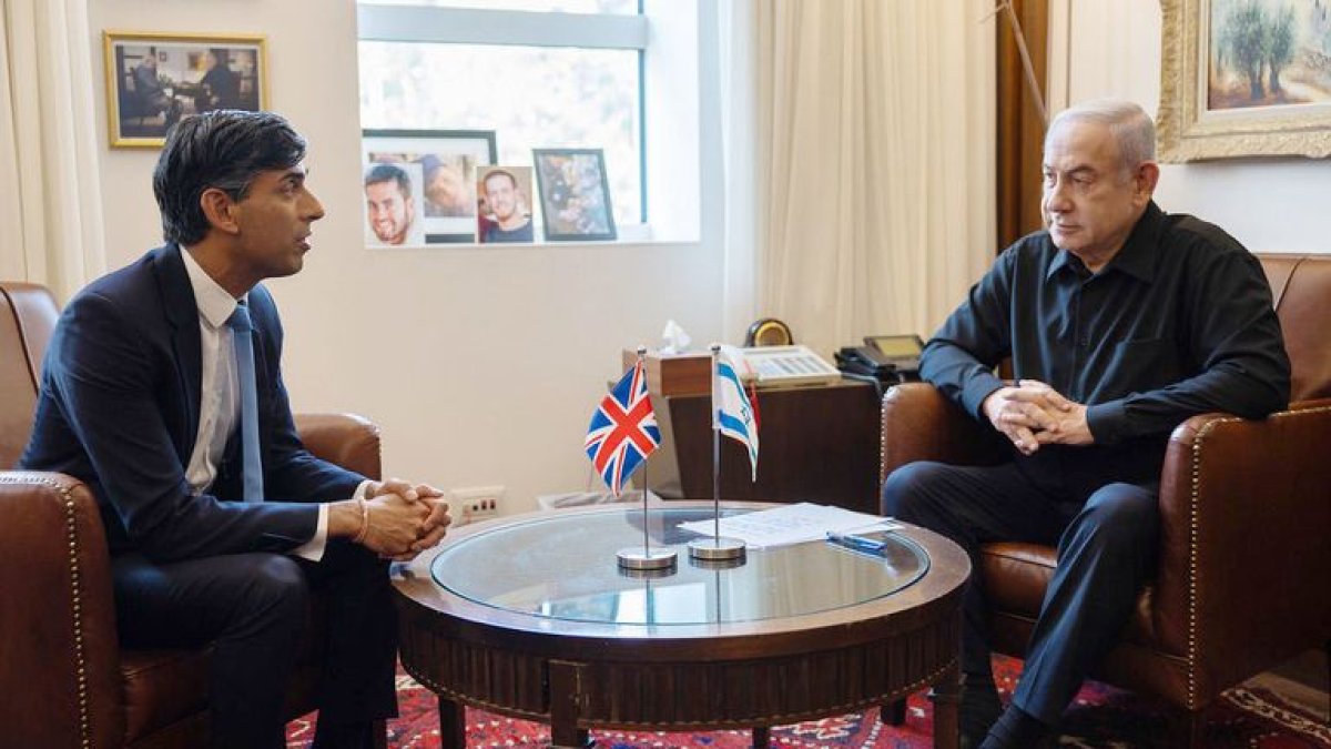 İngiltere Başbakanı Rishi Sunak ve İsrail Başbakanı Binyamin Netanyahu, bugün Kudüs'te bir araya geldi. Sunak ve Netanyahu, yaptıkları görüşmenin ardından ortak bir basın toplantısı gerçekleştirdi. Hamas'ın "yeni Naziler ve yeni IŞİD" olduğunu söyleyen Netanyahu, İsrail'e verdikleri destekten ötürü Sunak'a teşekkür etti.