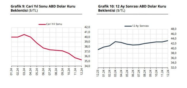 Katılımcıların cari yıl sonu döviz kuru (ABD Doları/TL) beklentisi bir önceki anket döneminde 35,72 TL iken, bu anket döneminde 35,30 TL oldu. 12 ay sonrası döviz kuru beklentisi ise bir önceki anket döneminde 42,75 TL iken, bu anket döneminde 43,23 TL oldu.