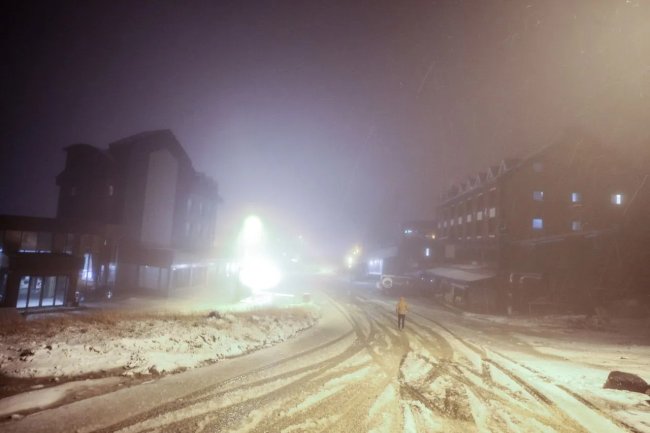 Her yıl çok sayıda yerli ve yabancı turistin ziyaret ettiği Uludağ'da yağmur, akşam saatlerinde yerini kara bıraktı.