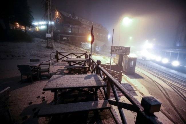 Türkiye'de kış turizminin önemli yerlerinden biri olan Uludağ'a yılın ilk karı düştü. Kısa sürede etkili olan kar yağışı sonrasında kar kalınlığı yer yer 3 santimetreyi buldu.